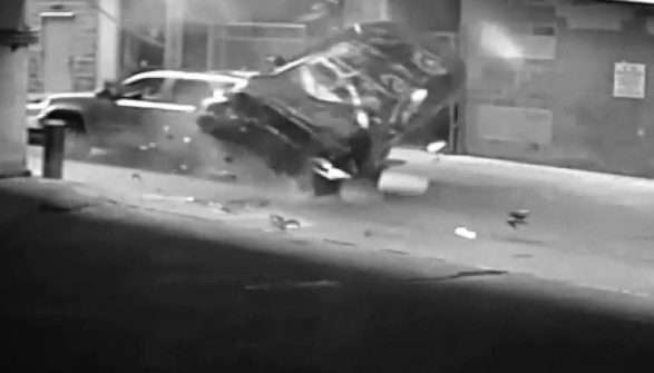 Policia në Austin të Teksasit ka publikuar një video në të cilën shihet një aksident i rrallë automobilistik.