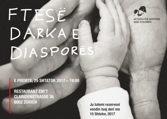 Fondacioni “Aksioni për nëna dhe fëmijë”, në bashkëpunim me organizatën zvicerane “Solidar Suisse”, organizon “Darkën e diasporës” në lokalin Eni’t në Zürich të Zvicrës, më 29 shtator 2017, prej orës 19:00 – 21:00.