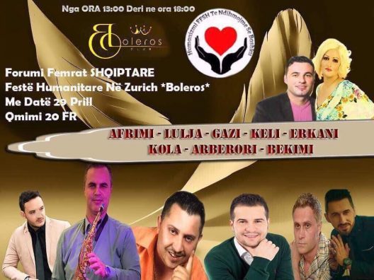 Forumi i Femrave Shqiptare fton të gjitha gratë të marrin pjesë në festën humanitare që organizohet në diskotekën "Bolero" në Cyrih, më 29 prill 2018