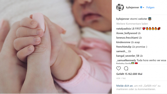 Jenner të martën publikoi një fotografi të vajzës së saj, Stormi Webster. Postimi deri tash ka mbi 15 milionë pëlqime, në krahasim me Beyoncen që kishte marrë 11.2 milionë, transmeton Albinfo.ch.