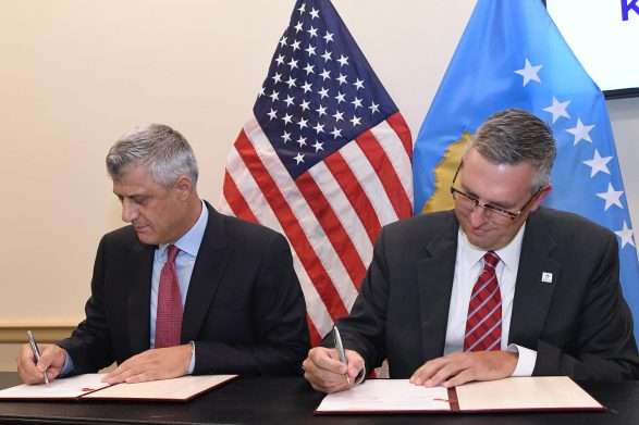 Thaçi në SHBA nënshkroi marrëveshjen 49-milionëshe me MCC-në
