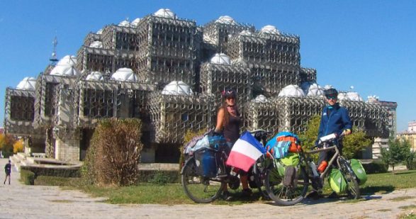 Në mes të trafikut të rëndë, Gaëtani e kalon kufirin prej 4000 km. Nëpër rrugë, flamuj të Republikës së Kosovës dhe Shqipërisë. Ky qytet i nënshtrohet popullaritetit të tij të fundit si kryeqendër e re e Ballkanit dhe simbol i fitores së shqiptarëve mbi serbët. Ai tregon qartë ashurimin e tij ndaj SHBA-ve (Bulebardi Bush, Bulevardi Bill Clinton, flamuri amerikan kudo, përkthime sistematike në anglisht, shkollat e gjuhës, shkollat amerikane). Në rrugë, na afrohen: “A jeni amerikan?” Sikur të shpresonin ta takonim ndonjë, ndërkohë që flamuri ynë i trotuareve valëvitet dukshëm pas biçikletës së Gaëtanit. Në vitin 1999, NATO mori pjesë në konflikt duke vendosur ta bombardojë Serbinë, derisa të dorëzohej. Sigurisht, atmosfera ndonjëherë është e tensionuar (por jo e rrezikshme!), Sepse nuk mund të gjejmë bashkëbisedues neutral për të na treguar faktet. Shqiptarët na tregojnë për terrorin që serbët e kishin ushtruar ndaj tyre, ndërsa ata kanë qenë paqësorë. Dhe, ata pak serbë që i takuam (kanë mbetur edhe 10 për qind) na tregojnë për një pushtim të dhunshëm të shqiptarëve në territorin “e tyre”. Situata është e vështirë të kuptohet, edhe pse banorët na mirëpresin shumë lehtë dhe kurrë nuk ishim në rrezik, në këtë vend. Përkundrazi. (Prishtinë – kryeqytet), transmeton albinfo.ch.