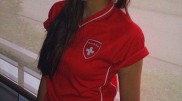 Anita Shala, kandidate për Miss Zvicra 2014, bën tifo për Zvicrën