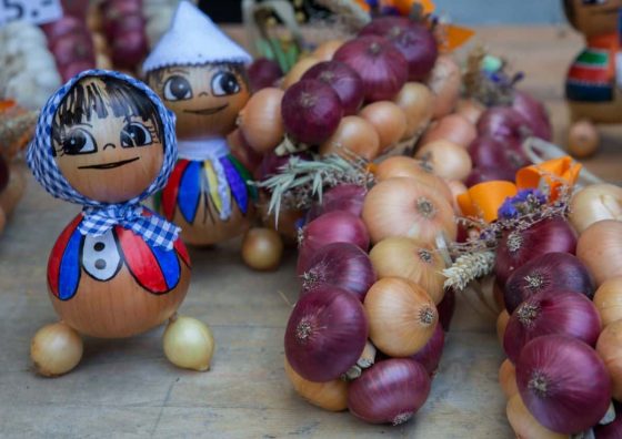 Përveç gërshetave të qepëve – një kulm i pakontestueshëm i tregut – mund të blini edhe kurora me qepë ose figura në dizajne të shumta nga më shumë se 200 tezga. Tregu, i cili gjithashtu shet ushqime me bazë qepë, si supë me qepë, katranë me qepë dhe pica me qepë, mbyllet në orën 18.00.