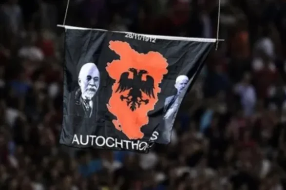 Dhe në atë minutë, nga qielli i Beogradit, sipër tifozëve, më ngadalë e duke valëvitur nga një dron, në fushën e lojës, afrohej flamuri me hartën e viseve etnike shqiptare, me portretet e Ismail Qemalit e të Isa Boletinit dhe me mbishkrimin “AUTOCHTHONOUS”.