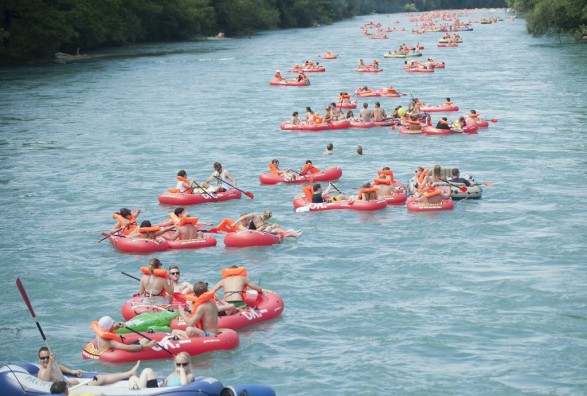 Të shtunën janë takuar në Bernë amatorët e barkave të gome, për të marrë pjesë në lundrimin unik dhe shumë masiv me këtë lloj barkash nëpër lumin Aare.