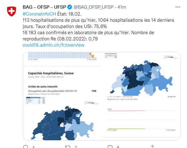 Në Zvicër aktualisht janë 1656 pacientë me korona në spital, 176 prej tyre në njësinë e kujdesit intensiv (ICU), njofton albinfo.ch.