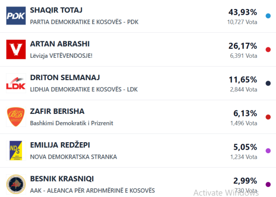 PDK e para aktualisht në Prizren, Shaqir Totaj kryeson me 43,9 për qind të votave