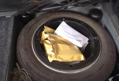 Gjatë inspektimit, doganierët gjetën në bagazhin në një gomë rezervë dy zarfet me të hollat që ishin mbështjellë me mbështjellës origjinal të një banke zvicerane. Në një çantë doganierët gjetën edhe faturat e lëshuara nga banka në fjalë.