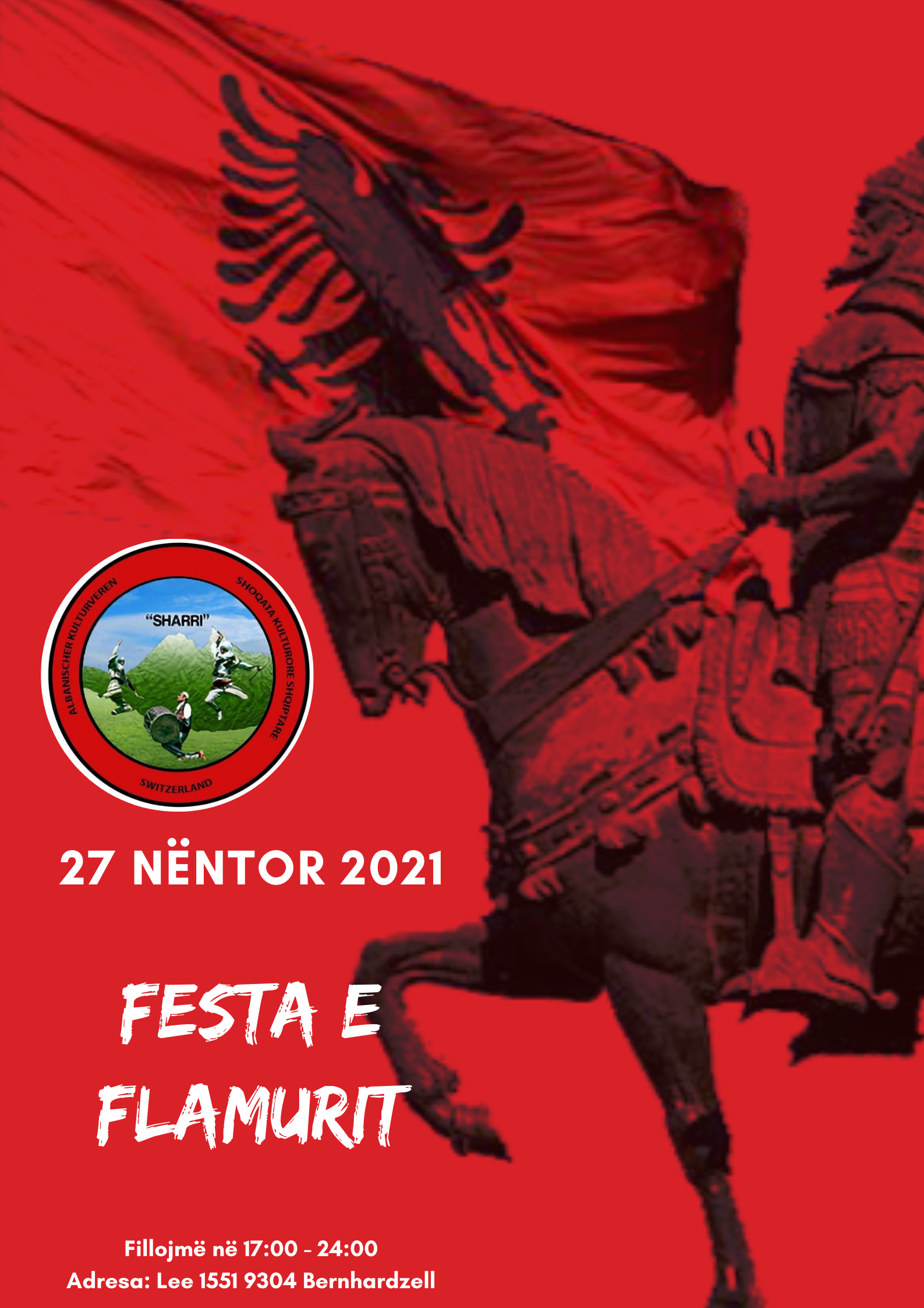 Shoqata Kulturore Sharri ka nderin të ftojë këdo, shqiptarë dhe miqtë e tyre, në festën dedikuar Ditës së Flamurit dhe të Pavarësisë së mëmëdheut në muajin e kombin tonë, siç e kemi quajtur Nëntorin.