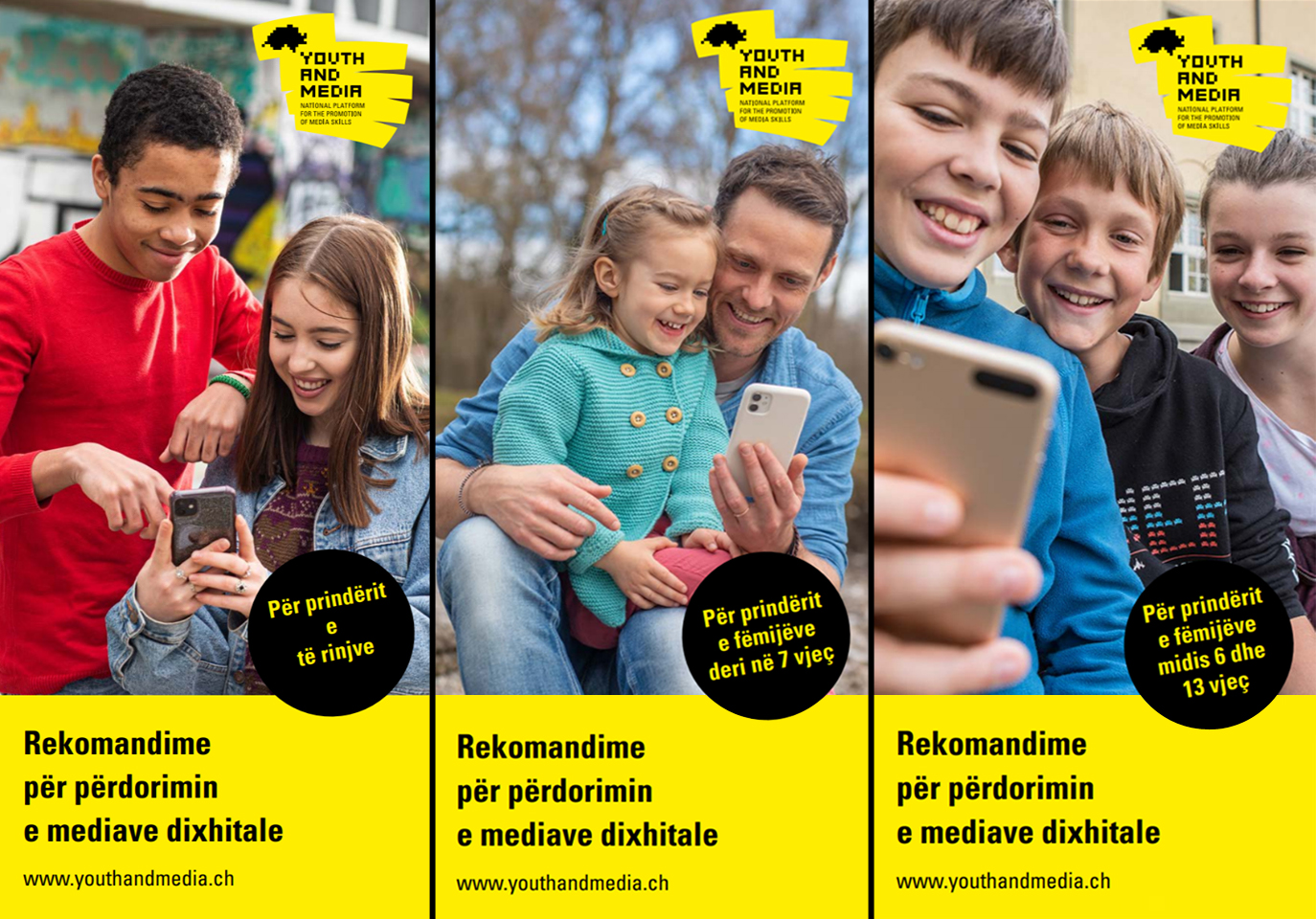 “Tani kemi rishikuar thelbësisht rekomandimet”, thuhet më tutje në njoftim. Tani kemi tri fletëpalosje në vend të një sa ishte më parë, kësaj radhe përmbajtja është përshtatur për tri grupmosha. Kështu, ekziston një fletëpalosje për prindërit dhe kujdestarët e fëmijëve deri në moshën shtatë vjeç, një tjetër me rekomandime që synojnë fëmijët e shkollës fillore dhe një i tretë që ofron këshilla për të gjitha aspektet e konsumit të mediave nga të rinjtë, përcjell albinfo.ch.