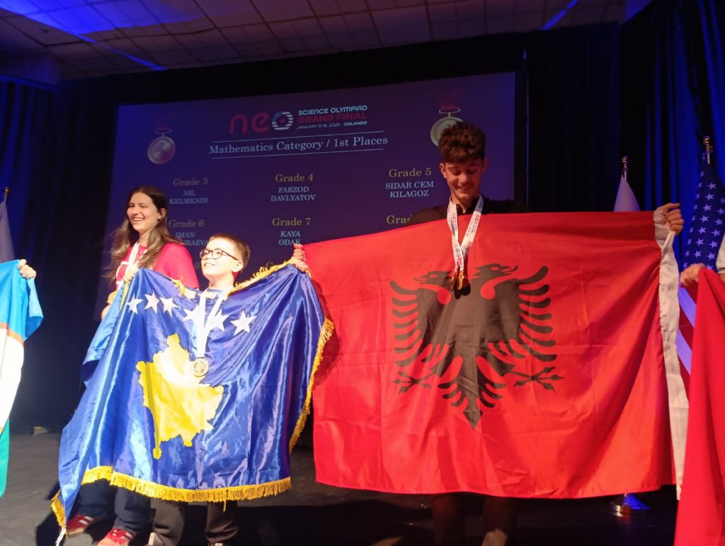 Nxënësit e Kosovës kanë arritur rezultate të jashtëzakonshme në NEO Science Olympiad 2026, e cila është mbajtur në Orlando, Florida, duke fituar medalje të arta, të argjendta dhe të bronzta në fusha të ndryshme shkencore si Inteligjenca Artificiale (AI), Biologjia, Kimia, Shkenca dhe Matematika, shkruan albinfo.ch.