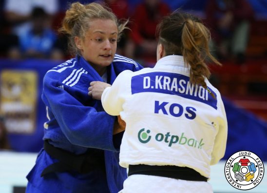 Krasniqi pati një ditë fenomenale në Japoni sot, duke e kaluar rundin e parë pa luftë për shkak se renditen në top 10-she, ndërsa në rundin e dytë e mundi mongolen Narantsetseg Ganbaatar. Rundin e tretë e kaloi pasi e mundi Julia Figueran e Spanjës.