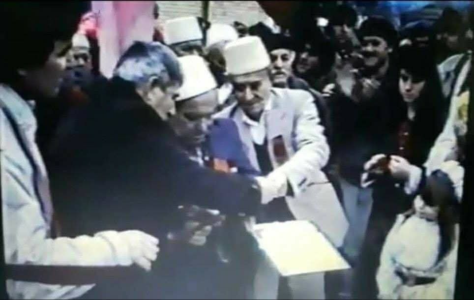 Video nga momenti i valëvitjes së flamuri kombëtar dhe prerja e shiritit nga veteranët e luftlës (1) Facebook
