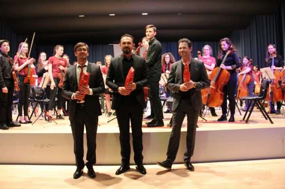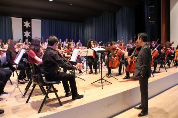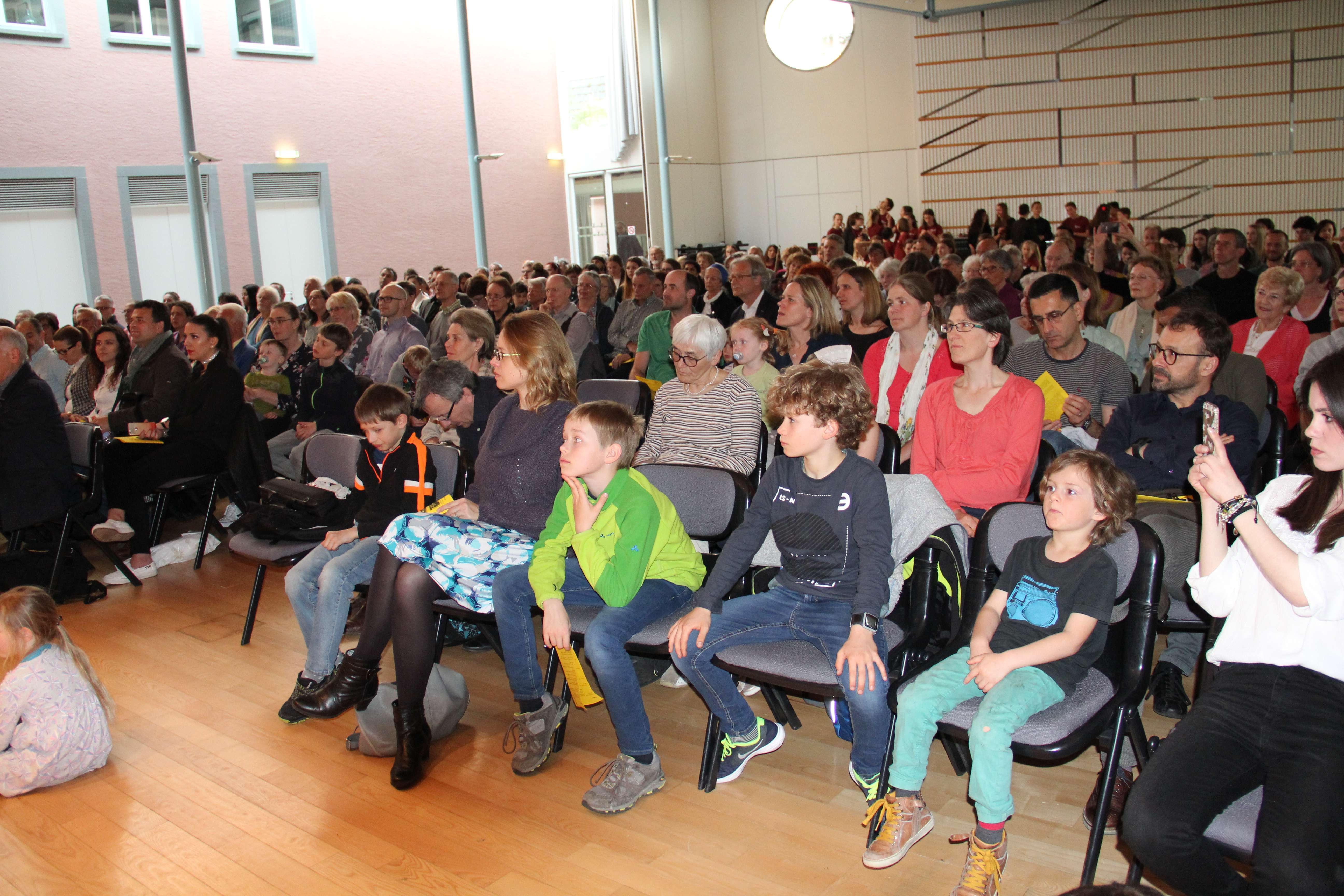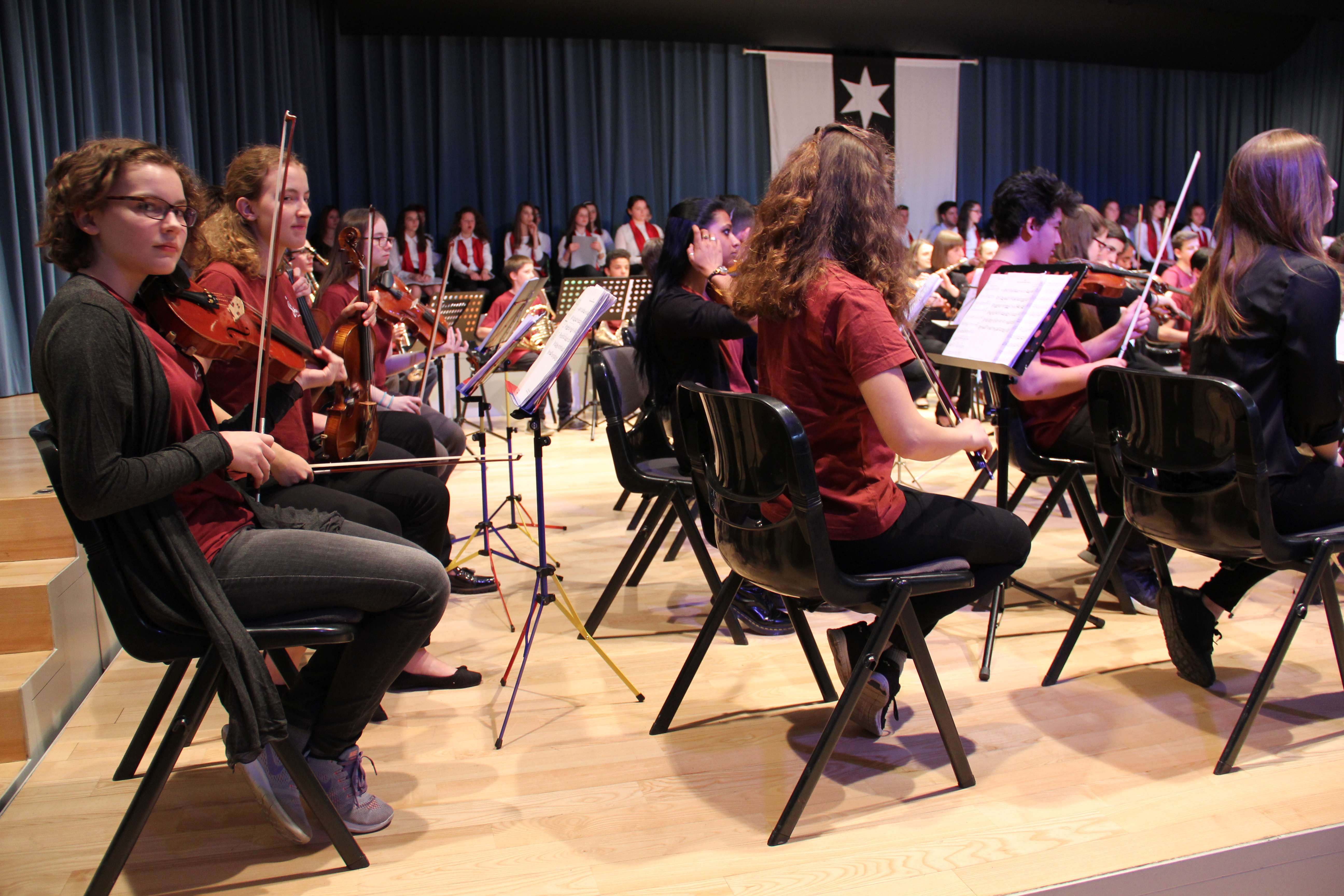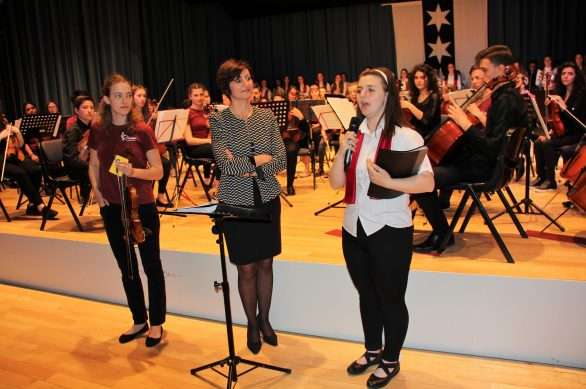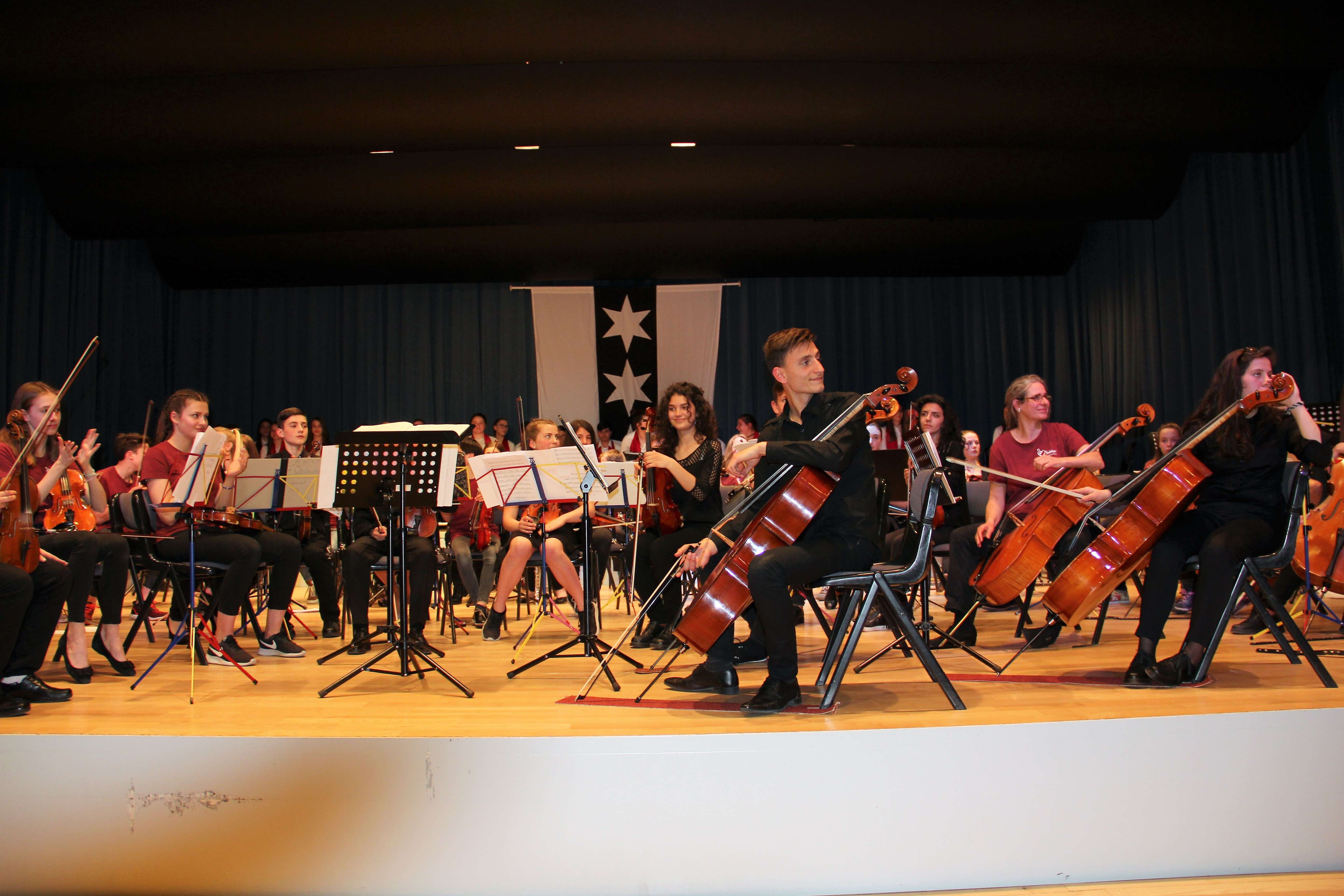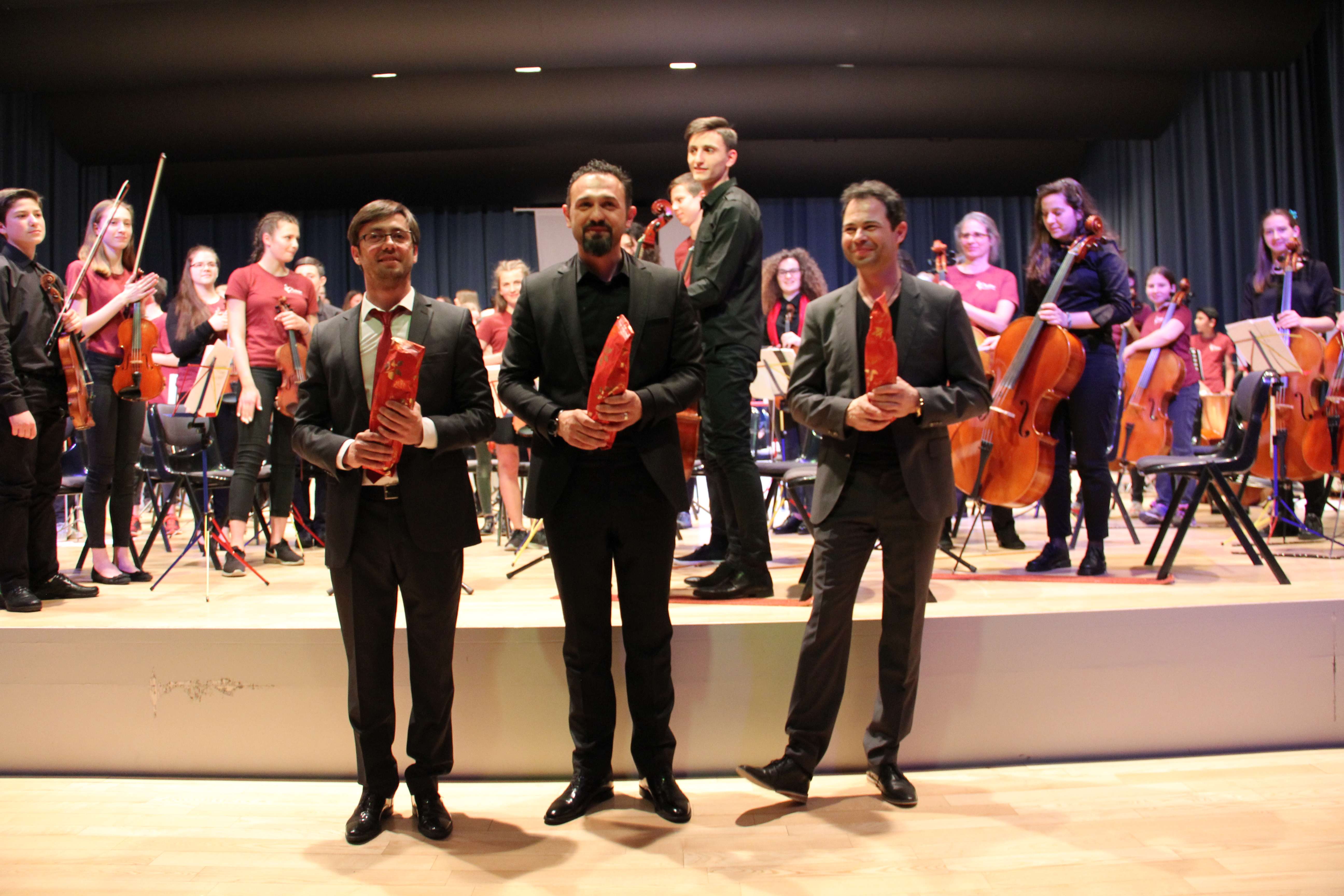 Vargu i tyre është i gjatë dhe pamja që ofrojnë është impozante: rreth 100 nxënës, instrumentistë e koristë ngjiten në skenë nën duartrokitjet e qindra spektatorëve. Gjysma e artistëve janë nxënës të shkollës së muzikës, “Prenkë Jakova” të Gjakovës dhe gjysma tjetër, nikoqirë, nga Binningen-Botmingeni në afërsi të Bazelit.