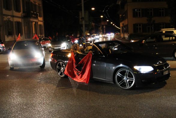 Të dielën pra rreth orës 23, si gjithkund në Zvicër e gjetiu janë mbledhur qindra e mijëra shqiptarë për të shprehur gëzimin me fitoren e parë në një evropian, transmeton albinfo.ch. Me atë rast nuk kanë munguar edhe festimet e shfrenuara, me vallëzim duke dalë nga dritaret ose tavanet e veturave, duke lëshuar boritë në maksimum dhe duke zhurmuar me motorë. Dhe kanë qenë pikërisht këto dy të fundit në Helvetiaplatz të Cyrihut që janë marrë si shkas për kallëzimet penale në fjalë.