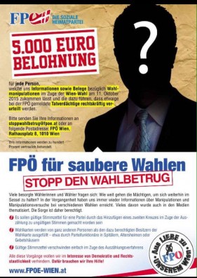Në shumë anketa të zhvilluara së fundi raportohet se FPO nuk është edhe shumë keq. Megjithatë, partia e udhëhequr nga Heinz Christian Strache nuk beson shumë se votat do të numërohen në mënyrë korrekte gjatë ditës së zgjedhjeve. Në shpallje të shumta ata u bëjnë thirrje qytetarëve të Vjenës që të denoncojnë materiale nëse gjejnë fakte për ndonjë parregullsi gjatë ditës së zgjedhjeve.