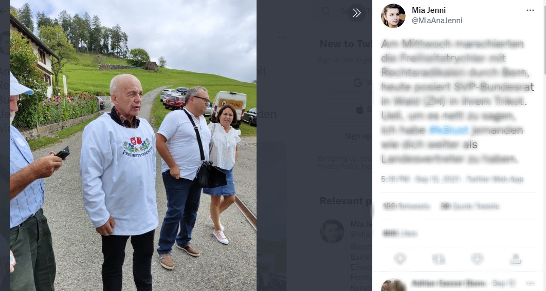 Am Mittwoch marschierten die Freiheitstrychler mit Rechtsradikalen durch Bern, heute posiert SVP-Bundesrat in Wald (ZH) in ihrem Trikot.