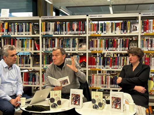 Një poet, dramaturg, studiues nga Shkodra dhe një poete nga Prizreni, shpalosin krijimtarinë e tyre në një bibliotekë zvicerane, të drejtuar nga një grua shqiptare, në një takim letrar të organizuar dhe udhëhequr nga një poet shqiptar që jeton në Zvicër. Ky është konstelacioni që po bëhet i zakonshëm në kohën kur qenia kombëtare nuk është e kufizuar brenda kufijve të kombit a të shtetit.