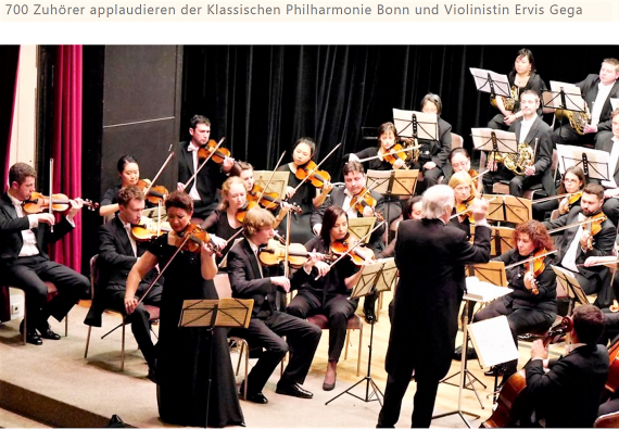 Gazeta gjermane “General Anzeiger” dhe media të tjera gjermane i kanë kushtuar hapësirë të madhe koncertit që violinistja shqiptare-gjermane Ervis Gega me filarmoninë “e saj” klasike të Bonit ka dhënë fundjavën që shkoi në Kurtheater të qytetit Bad Neuenahr. Sezonin me muzikë klasike të Vjenës e kanë ndjekur gjithsej 4000 spektatorë, transmeton albinfo.ch. Gega është prej më shumë se dhjetë vitesh koncertmaestro e kësaj orkestre dhe veç tjerash edhe profesoreshë në Shkollën e Lartë të Muzikës në Mainz.