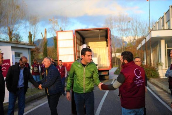 Katari sjell 8 kamionë me ndihma në Shqipëri