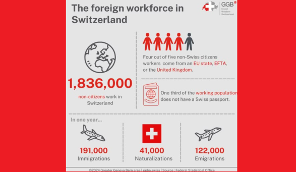 Me 1.8 milionë jo-shtetas në fuqi punëtore dhe një të tretën e popullsisë punëtore pa pasaportë zvicerane, Zvicra lulëzon me talentin global.