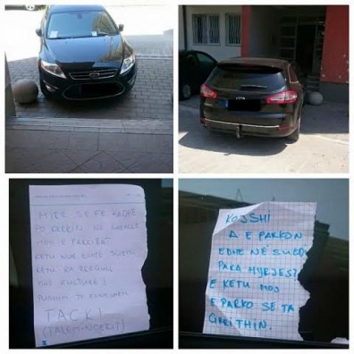 Një mërgimtar që ka ardhur për të pushuar në vendlindje, në Pejë është befasuar jo mirë nga një pusullë që ka gjetur në veturën e tij. Ai për disa ditë me radhë e ka parkuar atë para hyrjes së një ndërtese në Lagjen “Puhovci”, duke u penguar banorëve të qarkullojnë të lirë. Të mllefosur, ata kanë vendosur t’ia lënë një porosi në xhamin e veturës Ford, u lajmpress.info.