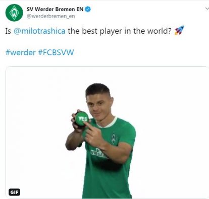 Is @milotrashica the best player in the world? ?#werder #FCBSVW pic.twitter.com/ArsxKGeQrj