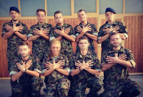 “Me gjoksin e nxjerrë përpara, me beretën në kokë dhe me zinxhirin e tërhequr në mënyrë korrekte deri lartë në qafë. Kështu kanë pozuar tetë ushtarë zviceranë dhe një ushtare për një fotografi, e cila ka bërë jehonë të madhe në facebook. Arsyeja është se ata ushtarë nuk i mbajnë duart në pozitën e njohur të përshëndetjes ushtarake, por me to formojnë një shqiponjë, të tillë çfarë mund të shihet në flamurin e Shqipërisë, një gjest që futbollistë si Pajtim Kasami dhe Adrian Nikçi e kanë bërë tashmë për të festuar fitoret e tyre,