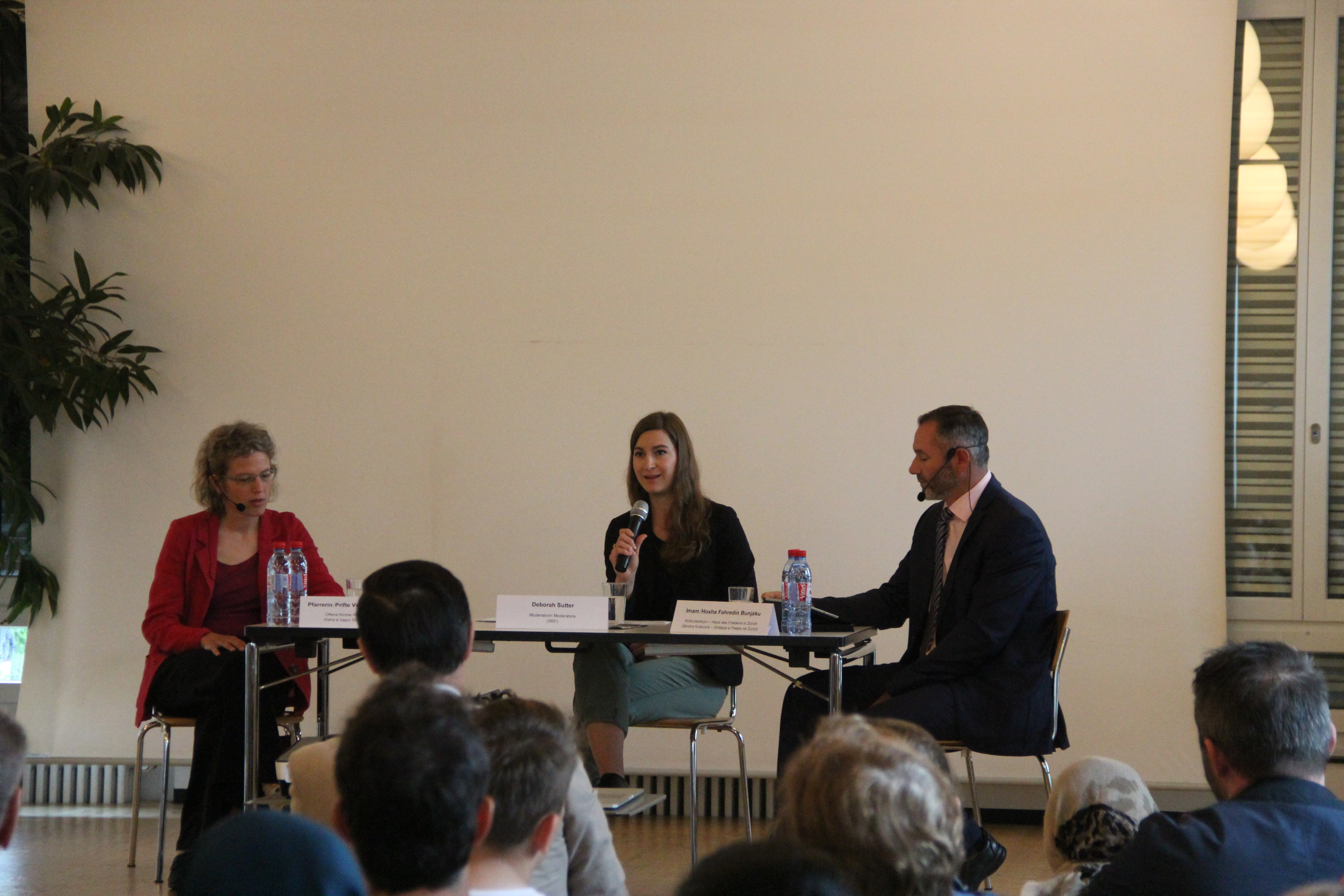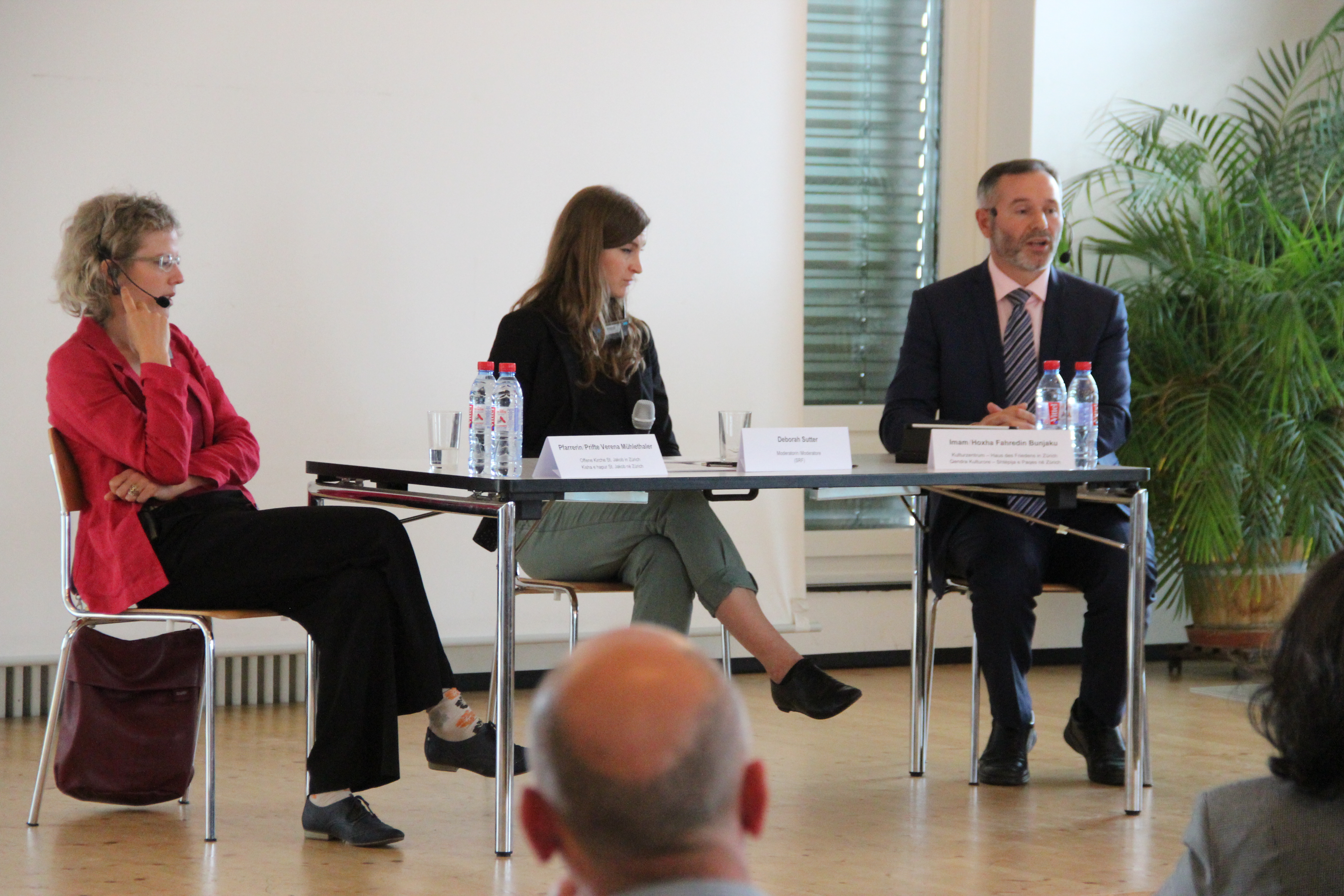 Ndërmjet tyre gazetarja Deborah Sutter nga SRF ka moderuar debatin e një imami me origjinë kosovare dhe një priftëreshe zvicerane, që kanë sjellë para mysafirëve dallimet dhe ngjashmëritë në fetë e tyre që pedikojnë.