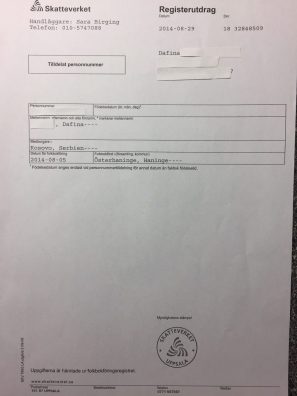 Kosovarët të cilët marrin leje qëndrim në Suedi, për t’u pajisur me numra personal, duhet të regjistrohen në një nga zyrat e Administratës Tatimore (Skatteverket) të këtij shteti.