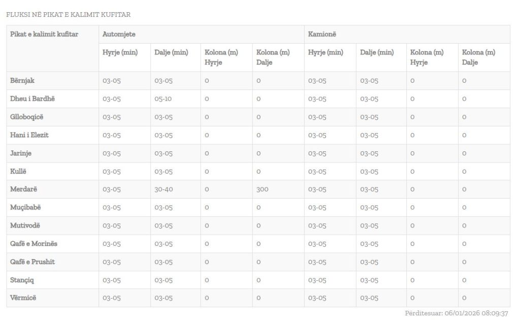 Bazuar në të dhënat e Qendrës Kombëtare për Menaxhim Kufitar, 40 minuta vijojnë pritjet në Merdarë.