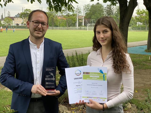 Peter Wesely, drejtor menaxhues i Shoqatës për Biznes për Integrim (VWFI), erdhi personalisht në BG / BRG Neunkirchen për të dorëzuar trofeun dhe çertifikatën për Agnesën. Dorëzimin e çmimit të parë për Agnesën, ai e bëri para nxënësve të klasës dhe menaxhmentit të shkollës. Ata e uruan Agnesën për suksesin e treguar dhe gjithashtu ia bën të ditur se shqiptarja ka fituar një udhëtim për në në Kroaci.