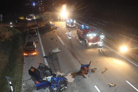 Në orën 6 të së dielës, në autostradën A5, si pasojë e këtij aksidenti janë përplasur katër vetura, ndërsa gjashtë persona humbën jetën.