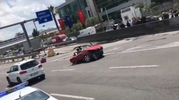 Nga pamjet e siguruara, shihet që automjetit me ngjyrë të kuqe është ndarë në dy pjesë.