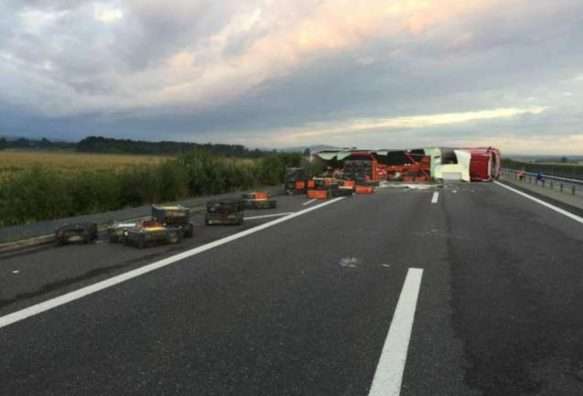 Aksidenti ka ndodhur pasi që shoferi i kamionit, për shkak të një pakujdesie, ka ngarë automjetin tepër në të djathtë. Për pasojë, kamioni është përplasur në një kanal të kullimit dhe është përmbysur. Autostrada ka mbetur e bllokuar për pesë orët në vazhdim.