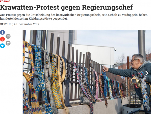 Sigurisht, krahas “kauzës humanitare” në të cilën aktivistët e kanë mbështetur aksionin e tyre, ka qenë edhe pamja simpatike me larminë e ngjyrave të kravatave ajo që ka vendosur sot fokusin e medive ndërkombëtare në Prishtinë. Kështu, për shembull, “Die Welt” e publikon një fotografi nga ky aksion duke e përzgjedhur në mesin e fotove më të bukura të ditës.