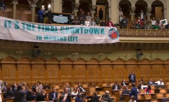 Disa dhjetëra aktivistë të organizatës “Aktion Klimastreik” kanë befasuar në mëngjesin e të enjtes deputetët dhe personelin e Parlamentit Federal. Ata, me paraqitjen e tyre në tribunat e sallës së Dhomës Nacionale të Parlamentit të Zvicrës kanë penguar dhe ndërprerë për disa minuta debatin që po zhvillohej në sallë, shkruan srf.ch.