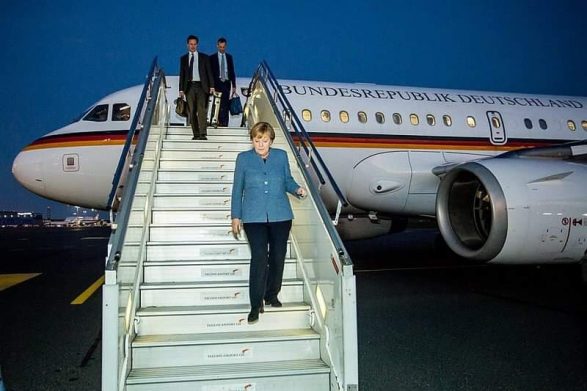 Kancelarja Merkel po udhëtonte së bashku me zëvendëskancelarin dhe Ministrin e Financave, Olaf Scholz.