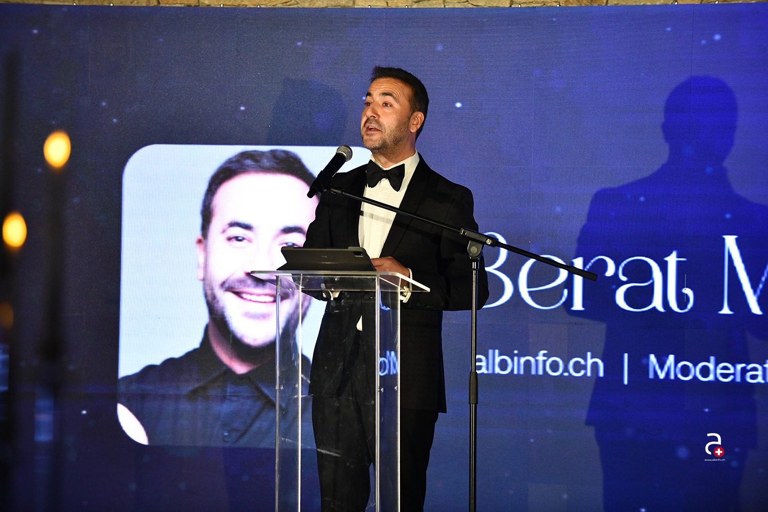 CEO i platformës mediale albinfo.ch, Sevdail Tahiri, mbajti një fjalë ceremoniale me ton diplomatik, duke shprehur mirënjohje për sponsorët strategjikë të mbrëmjes: BAU Investment Schweiz AG, smzh, Orllati Group, Air Prishtina, AMAG, RIA, Multinet, Noor Bau Management, Munishi AG, Green House, Halli Partner, Mahagoni, Drop In Lab, ASM Immobilien AG dhe My Laser Vision, Gani Transport, AMC dhe Think B Agency nga Prishtina me Erisa Jakupin dhe Janina Mehmeti.