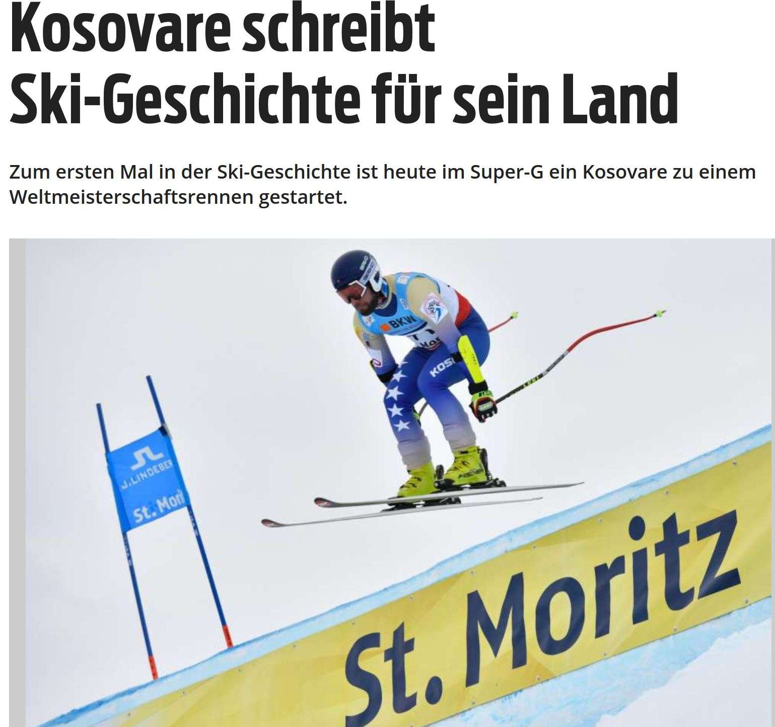 Për herë të parë në një Kampionat Botëror ka marr pjesë edhe Kosova, me skiatorin Albin Tahiri. Ai debutoi sot në garën e Super G, që ishte historike për vendin e tij, shkruan albinfo.ch.
