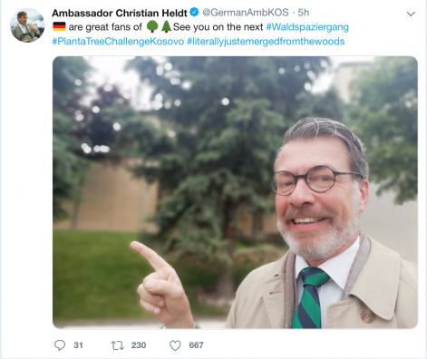 Në një postim në Twitter, Heldt ka shkruar, “gjermanët janë adhurues të maleve. Sapo dola prej malit, shihemi sërish”.