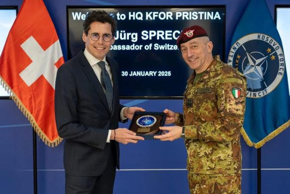 Dje, ambasadori i Zvicrës në Kosovë, Jürg Sprecher, u takua me komandantin e KFOR-it, gjeneralmajor Enrico Barduani për të riafirmuar përkushtimin e kahershëm të Zvicrës për promovimin e paqes dhe sigurisë së qëndrueshme.