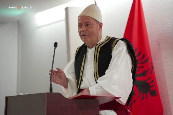 Ambasadori i RSH-së në Bernë, z.Mustafa Nano, në fjalën e tij përshëndetëse doli para pjesëmarrësve me veshjen kombëtare të jugut të Shqipërisë.