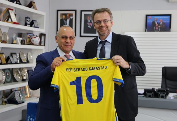 Kryetari i Federatës së Futbollit të Kosovës, Agim Ademi, ka pritur ambasadorin norvegjez në Kosovë, Per Strand Sjaastad, në një takim, siç e cilëson FFK-ja, “tejet miqësor”.