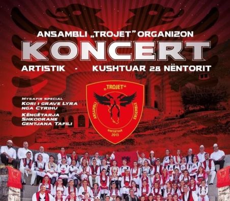 Ansambli i këngëve dhe valleve „TROJET” ju fton në një mbrëmje të veçantë për nder të Ditës së Flamurit dhe Pavarësisë më 28 Nëntor. Ky koncert do të jetë një mundësi unike për të festuar së bashku dhe për të përjetuar emocionet dhe krenarinë e kulturës sonë.