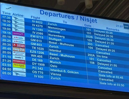Ndërsa, nisjet nga ANP ‘Adem Jashari’ për vajtje në Hannover, Nuremberg, Basel – Mulhouse, Zurich, Stamboll, Basel – Mulhouse, Munich dhe Oslo disa janë anuluar e disa të tjera janë shtyer.