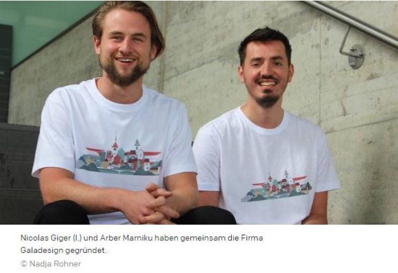 Të dy pronarët e Agjencisë për kreativitet «Galadesign» nga Oberentfeldeni kanë projektuar veshje bashkëkohore: një fanellë të vizatuar përmes fotoshopit dhe ilustrimit të Gigers me të gjitha bukuritë e Aaraus.
