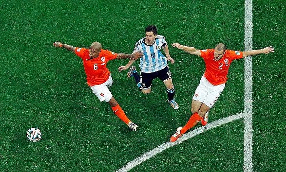 90 minuta të ndeshjes gjysmëfinale Holanda-Argjentina kaluan pa gola. U luajt një lojë me finesa taktike por pa emocione dhe pa tensione të shumta. Mbrojtjet e të dyja skuadrave ishin të pakalueshme për kundërshtarin respektiv kështu që edhe shanset serioze ishin të pakëta. Robben i Holandës megjithatë ka pasur disa shanse të mira, të shpërndara në gjithë ndeshjen por pa rezultat.