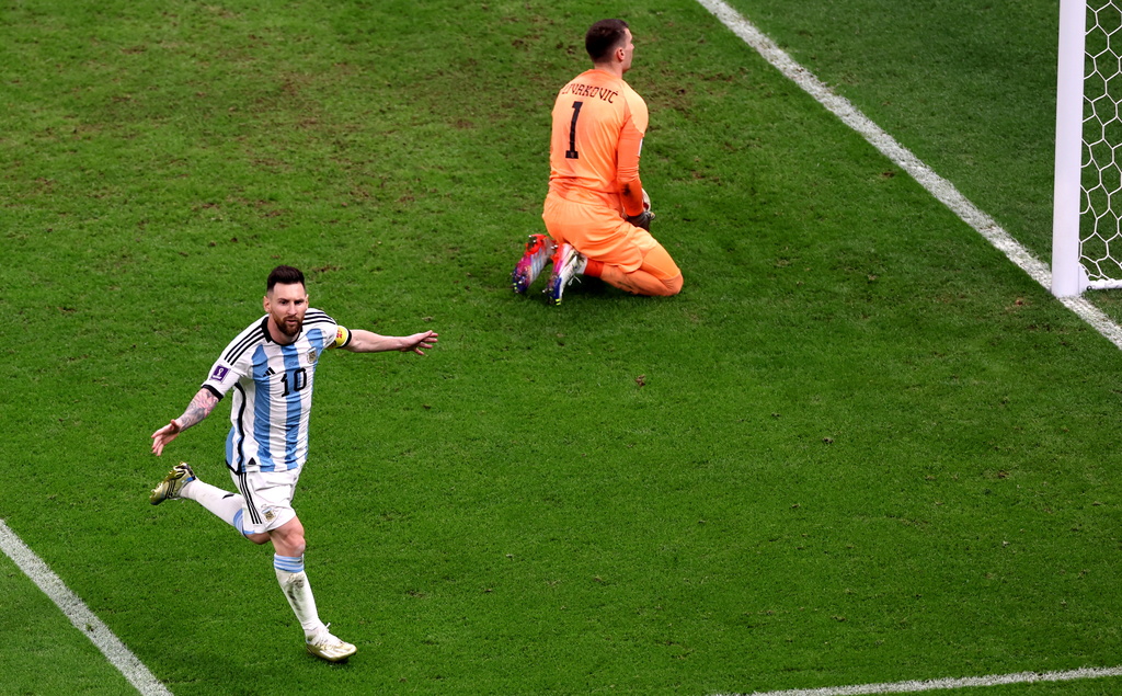 Lionel Messi shënoi golin e parë nga penalltia pas 34 minutave lojë. Derisa Julian Alvarez erdhi me një gol fantastik pesë minuta më vonë duke dyfishuar rezultatin.